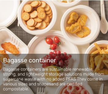 Bagasse containers are sustainable renewable, strong, and lightweight storage solutions made from sugarcane waste waste with no added PFAS They come in various sizes and shapesand are certified compostable.